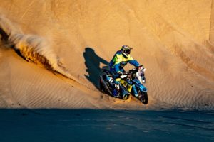 „Jel poměrně rychle menšíma dunama a najednou mě to vykoplo. Měl jsem vyhozené rameno, bolí mě třísla a vlastně úplně všechno. Bylo to kousek do cíle, tak mě posadili na motorku a já to nějak dojel“.