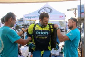 Oba jezdci Orion – Moto Racing Group prožili náročný den. Zítra je čeká poslední etapa prvního ročníku Dakar rallye v Saudské Arábii. Z Dakarů v Jížní Americe jsme zvyklí, že je poslední etapa spíše formalitou. Letos však závodníky bude čekat ještě 374 závodník kilometrů, během kterých se ještě může leccos změnit.